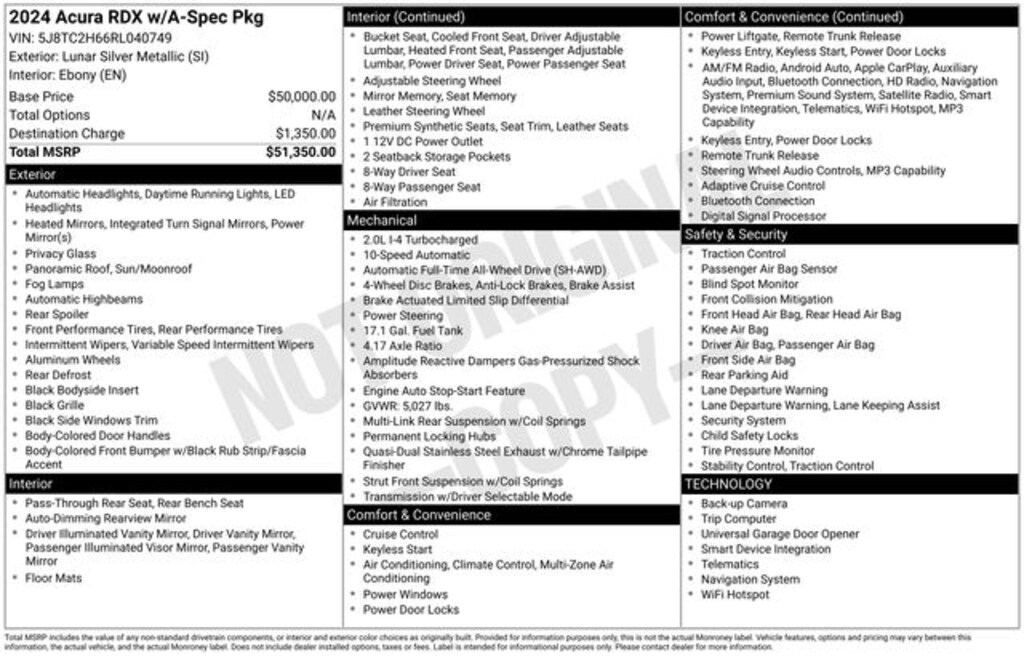 Certified Pre Owned 2024 AcuraRDX A-Spec Package