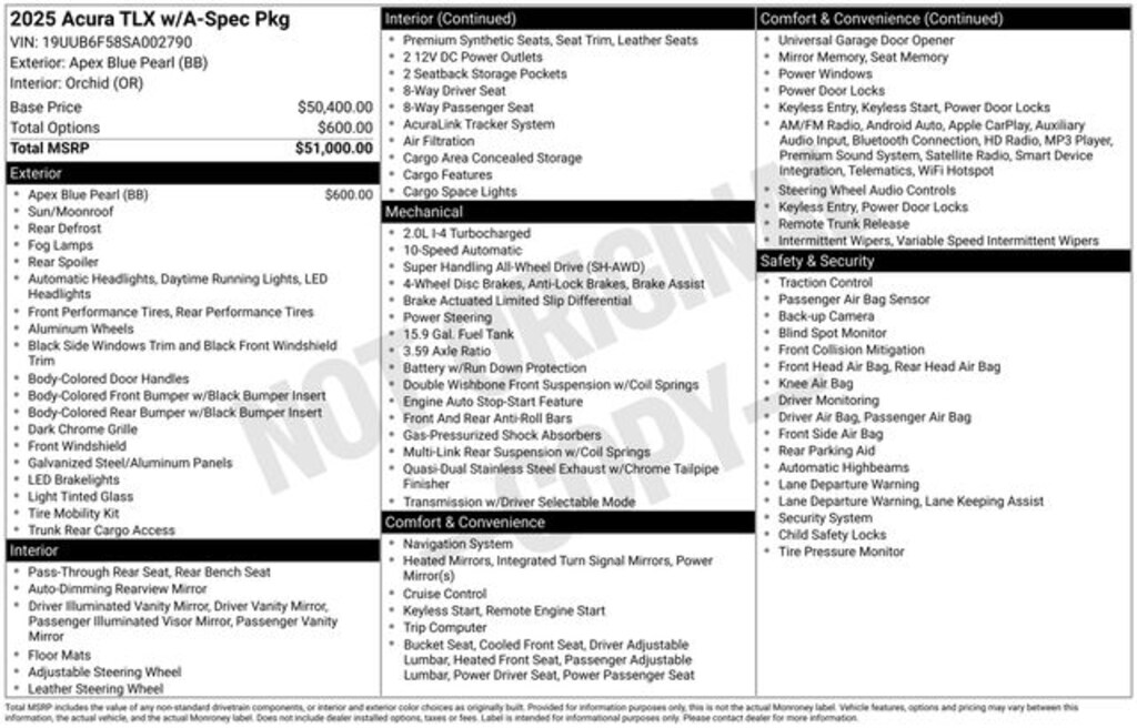 Certified Pre Owned 2025 AcuraTLX A-Spec Package