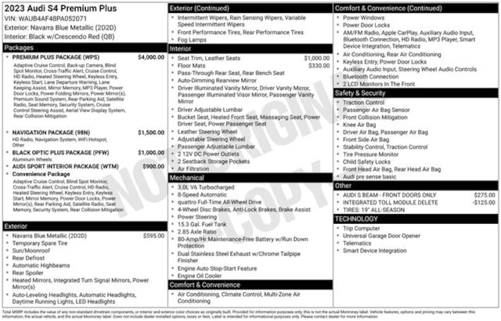 - Smart device integration: Audi smartphone interface (Apple CarPlay/Android Auto)